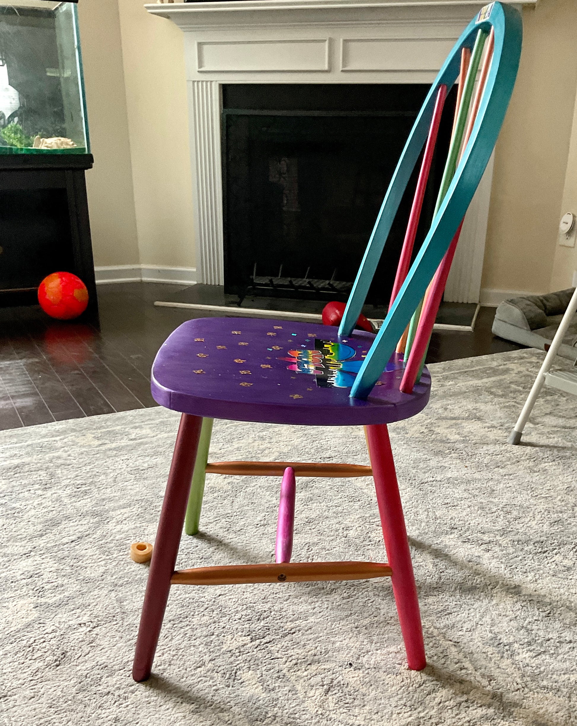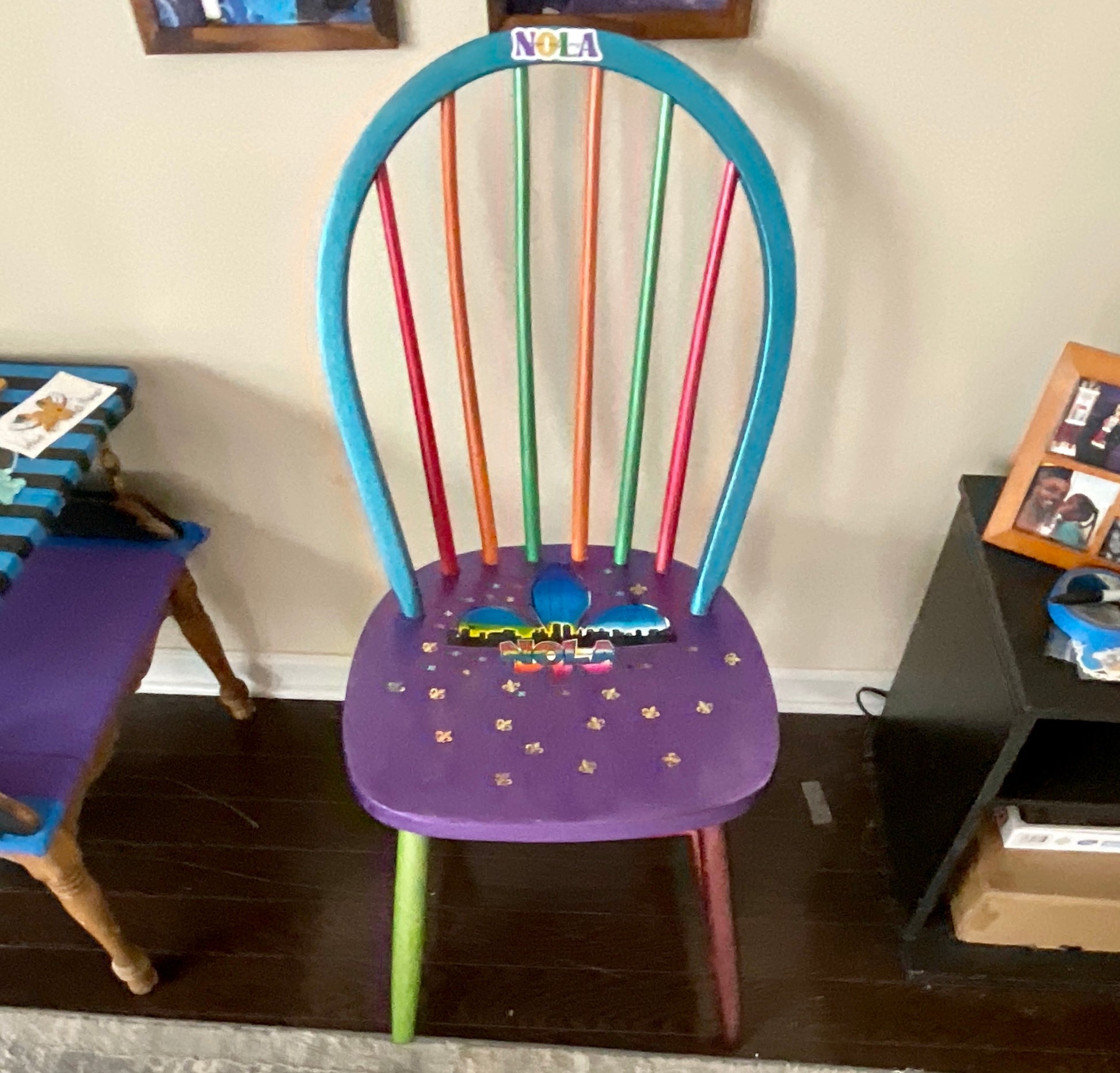 New Orleans Mardi Gras chair, whimsical Mardi Gras chair, painted, embellished with fleur de lis